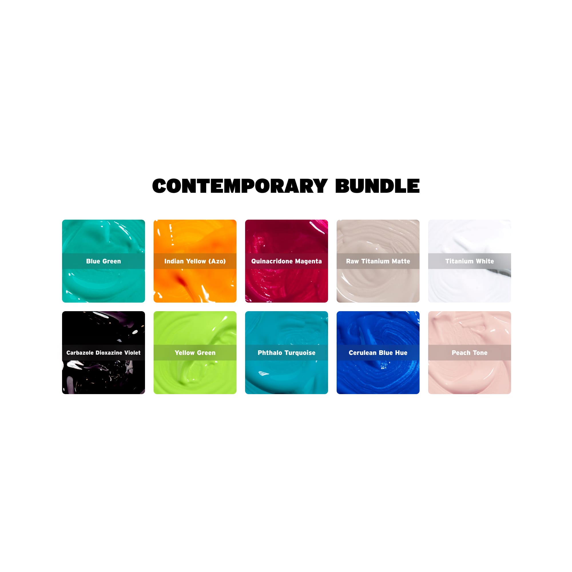 This versatile bundle brings together a balanced mix of bold brights, soft neutrals, and grounding deep tones. Perfect for artists who want flexibility without overthinking their palette. Curated to support everything from expressive abstracts to landscapes, florals, and portrait work, this set delivers strong color payoff, smooth mixing, and endless creative range.