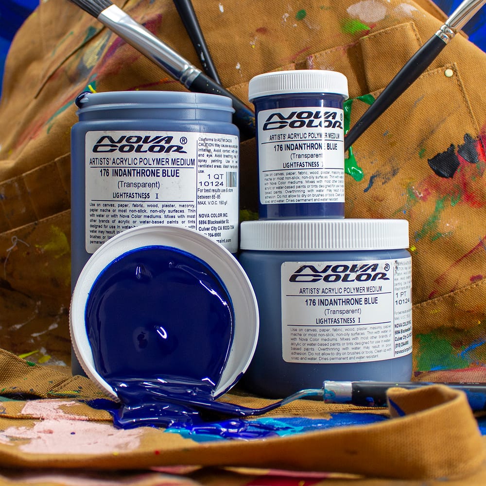 Our #176 Indanthrone Blue (Lightfastness) - Transparent acrylic paint has a beautiful Blue, Transparent color that will remain vibrant even after years of exposure to light. Get bright, bold, and stunning colors with our #176 Indanthrone Blue (Lightfastness) - Transparent acrylic paint. Perfect for mixing and creating custom colors, #176 Indanthrone Blue (Lightfastness) - Transparent Paint may be used on fine-art paintings and other applications. #176 Indanthrone Blue (Lightfastness) - Transparent paint is suitable for both professional applications and beginners’ projects or crafts. Available in 4 oz, Pint (16oz), Quart (32oz), Gallon (128oz), 5 Gallon Pail) try #176 Indanthrone Blue (Lightfastness) - Transparent Paint now for any project that requires a highly pigmented, rich color.”