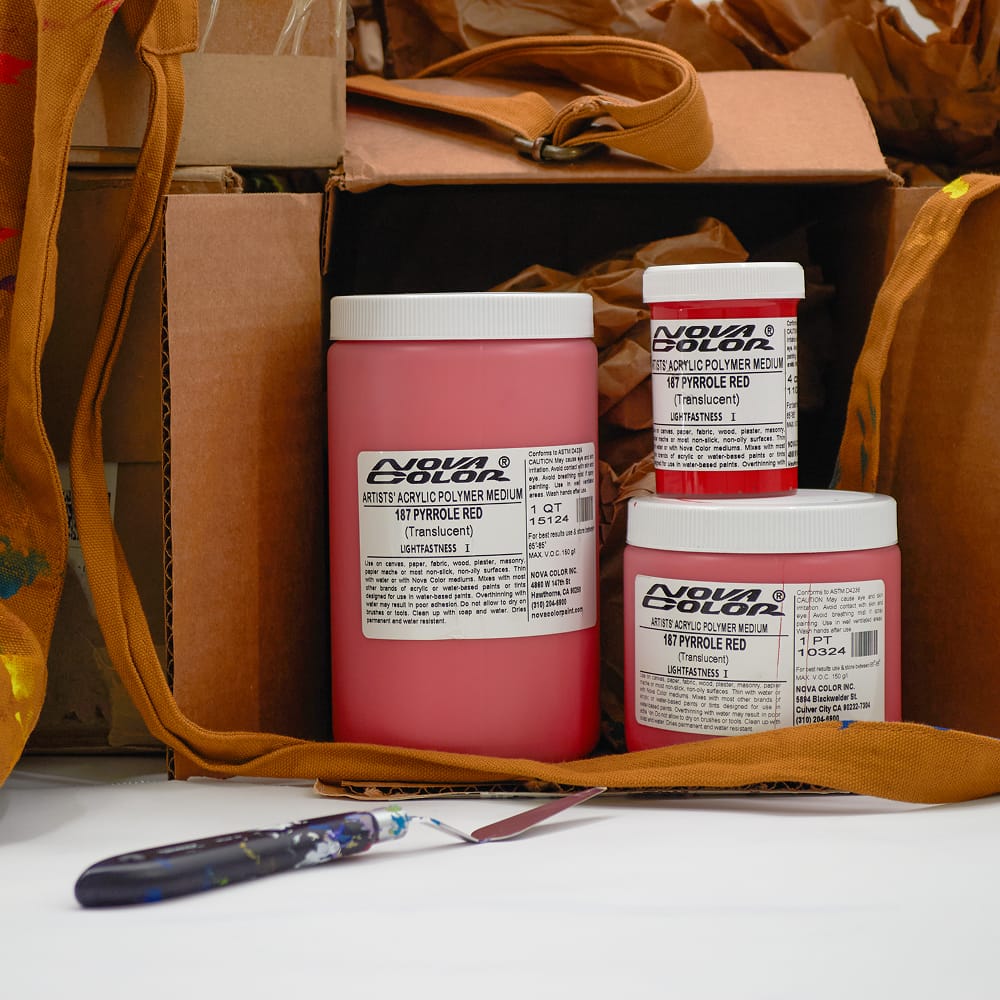 Our #187 Pyrrole Red (Lightfastness) - Translucent acrylic paint has a beautiful Red, Translucent color that will remain vibrant even after years of exposure to light. Get bright, bold, and stunning colors with our #187 Pyrrole Red (Lightfastness) - Translucent acrylic paint. Perfect for mixing and creating custom colors, #187 Pyrrole Red (Lightfastness) - Translucent Paint may be used on fine-art paintings and other applications. #187 Pyrrole Red (Lightfastness) - Translucent paint is suitable for both professional applications and beginners’ projects or crafts. Available in 4 oz, Pint (16oz), Quart (32oz), Gallon (128oz), 5 Gallon Pail) try #187 Pyrrole Red (Lightfastness) - Translucent Paint now for any project that requires a highly pigmented, rich color.”